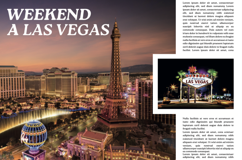 Questa impaginazione è pensata per una rivista che racconta Las Vegas, non solo come città, ma come una vera e propria esperienza visiva, sensoriale e …